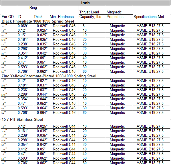 Circlips can help to protect cylinders better far than you think. Open them with retaining ring pliers (sold separately), pass them over the end of a shaft, and release to install. Ring ID is measured with the ring uninstalled.1060-1090 spring steel has good strength. A black-phosphate finish is mildly corrosion resistant in dry environments. A zinc yellow-chromate plated finish is mildly corrosion resistant in wet environments.15-7 PH stainless steel has high strength with good corrosion resistance. These rings are passivated for extra protection against corrosion.